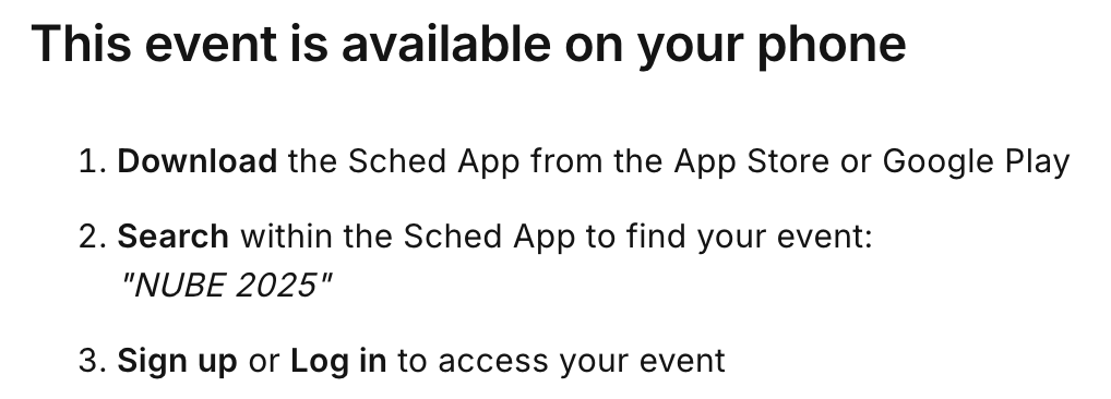For the latest NUBE 2025 information and schedule, download the NUBE mobile app on your phone or mobile device.